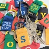 ”THIS IS MY OWN STUFF”(=これはわたしのものです)の刺繍が施されており