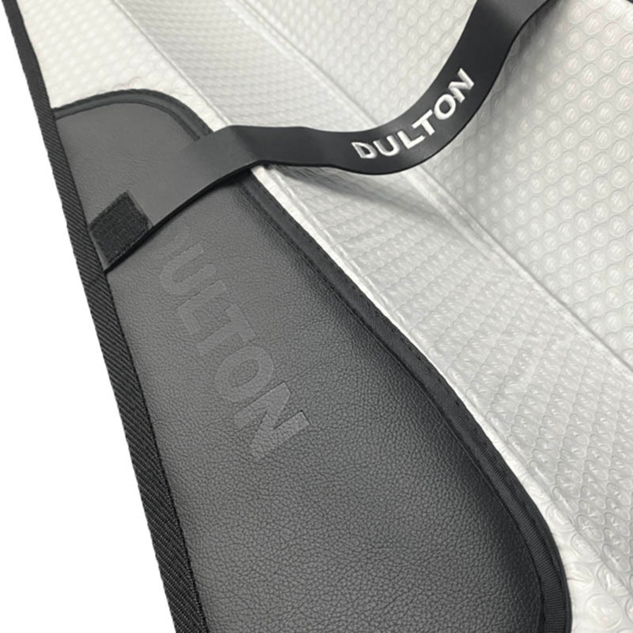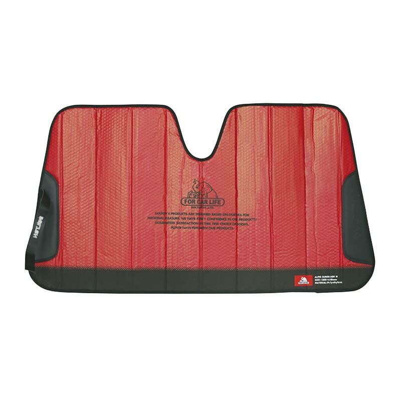 広げてフロントガラスにあてがい、両サイド(運転席/助手席)のサンバイザーで固定してください。