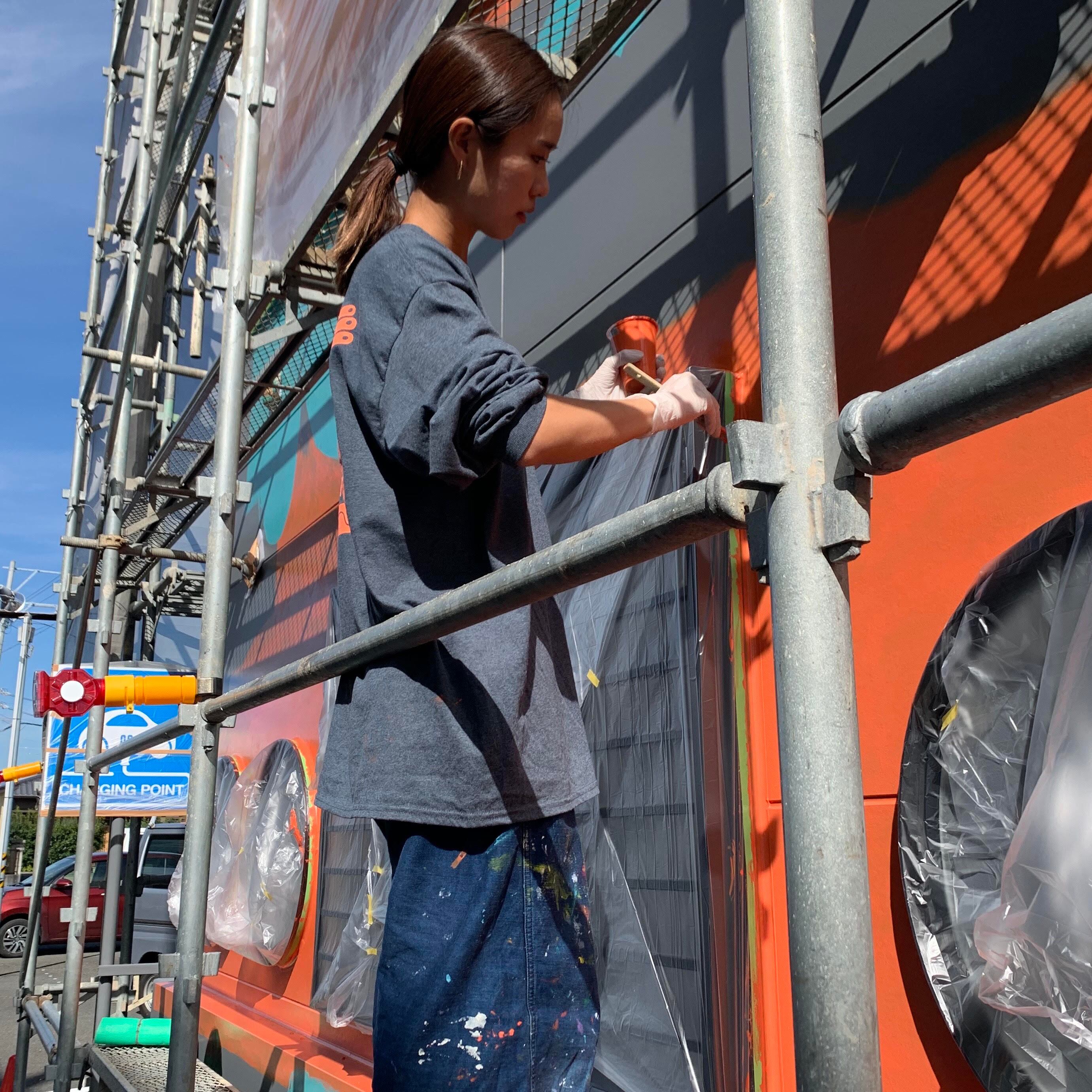当店のオリジナルアイテム、そして店舗壁画を手がけてくれた
