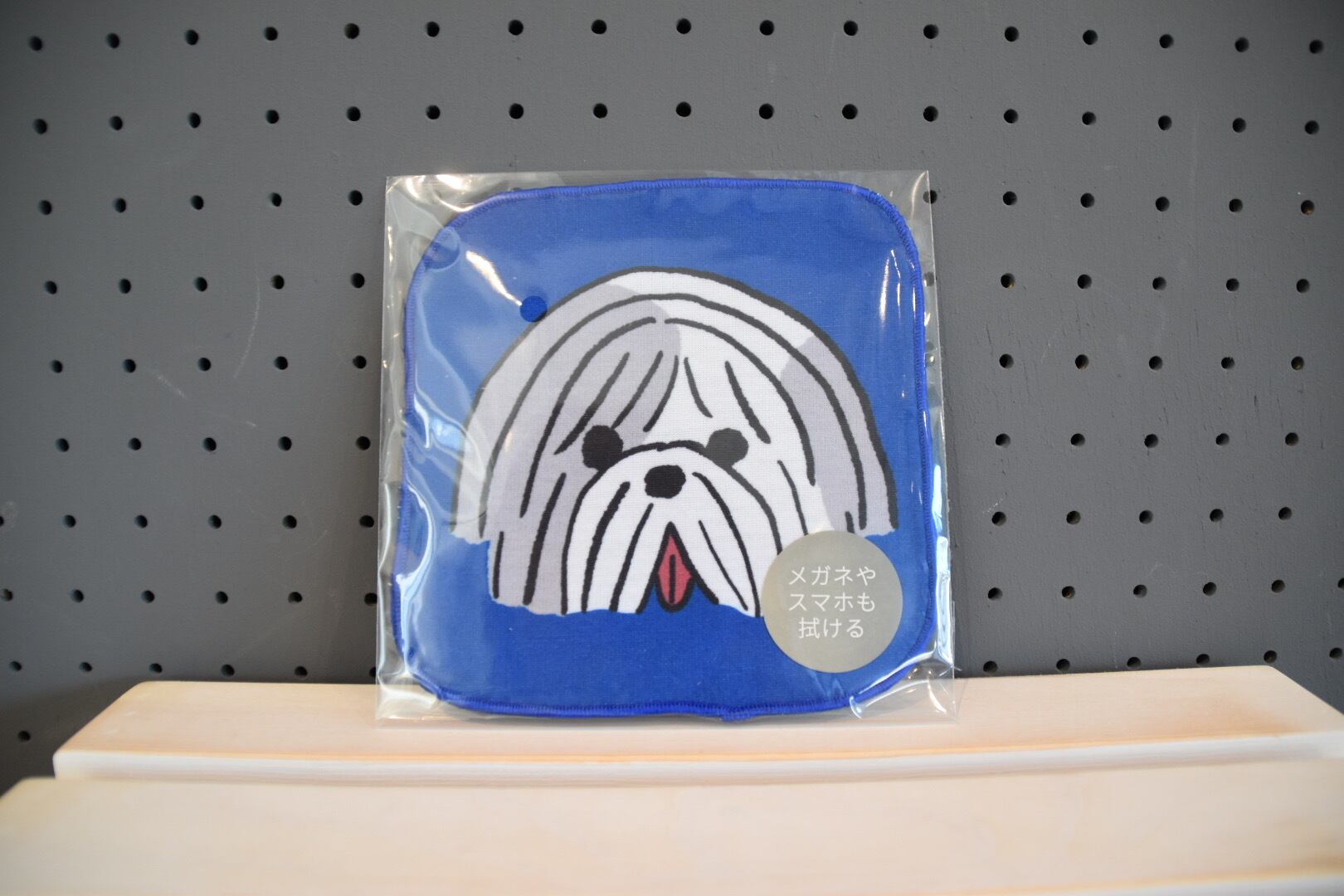 山鳩舎・みやぎちかさんの描く動物達が目をひくタオルハンカチ。少しでている舌がなんとも可愛らしいです。